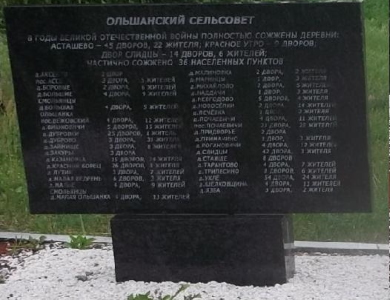 Памятный знак в память о сожжённой деревне Двор Слидцы на мемориальном комплексе в Вишенках.Источники: