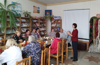 1 октября центральная районная библиотека организовала для членов народной студии флористики «Флора», пользователей библиотеки и клуба «Ветеран» час отношений «В гармонии с возрастом». В начале мероприятия библиотекарь поздравила присутствующих с праздником, подчеркнула, что в любом возрасте очень важно вести активный образ жизни, и предложила продемонстрировать свои способности и знания, как оставаться молодыми, активными и творческими. Звучали стихотворные